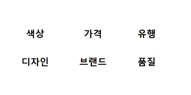 먼저 자신이 쇼핑을 하면서 중요하게 생각하는 것을 골라보자.